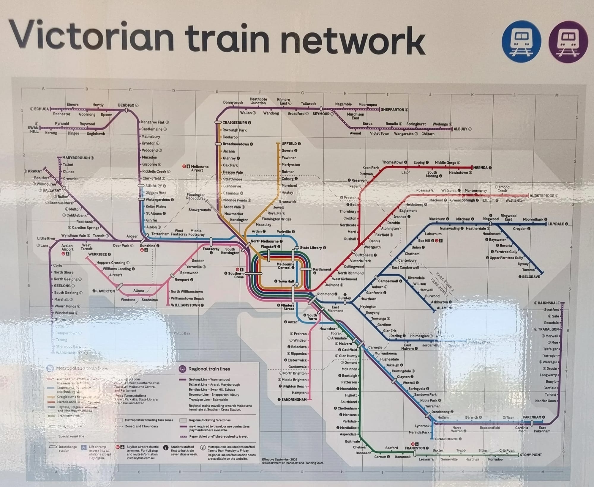 While it's not published on official channels yet in PDF form, this photo taken by Che0063 on Reddit shows what is broadly expected to be the new Melbourne Train Map for 2026.