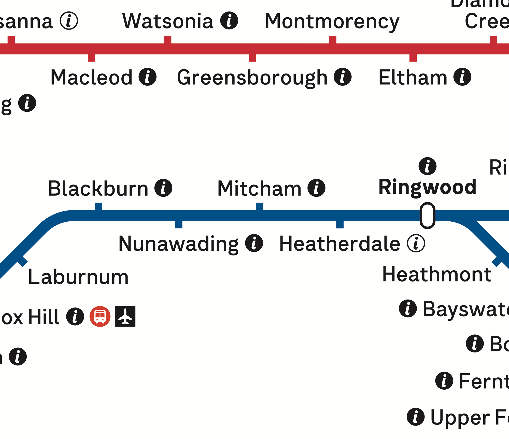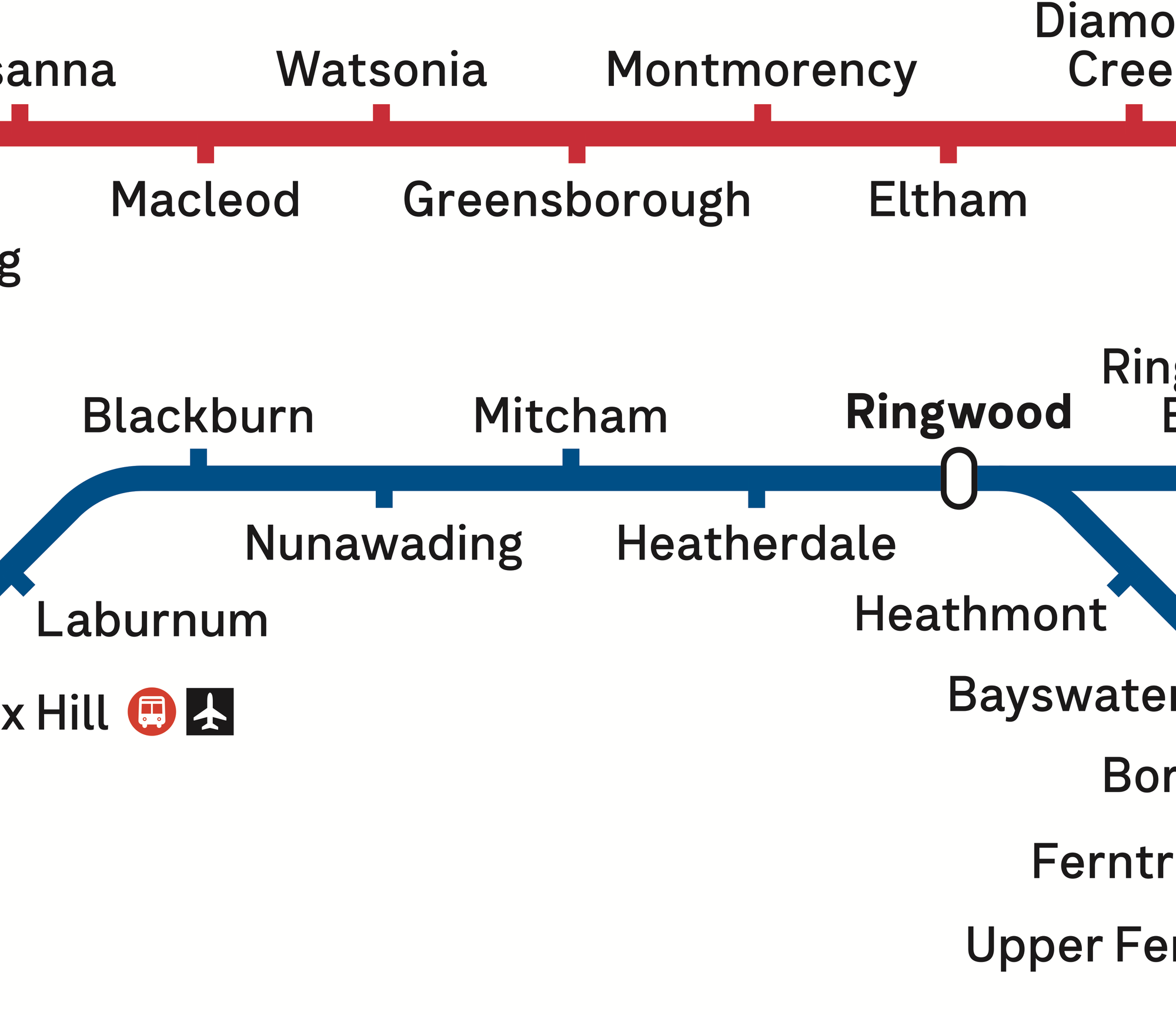 By leaving the SkyBus icons grouped next to V/Line terminating services, there is an implication that those services all start and stop at Southern Cross. Unlike the rest of the metropolitan lines, which run through in at least one direction.