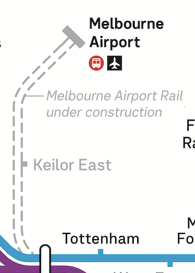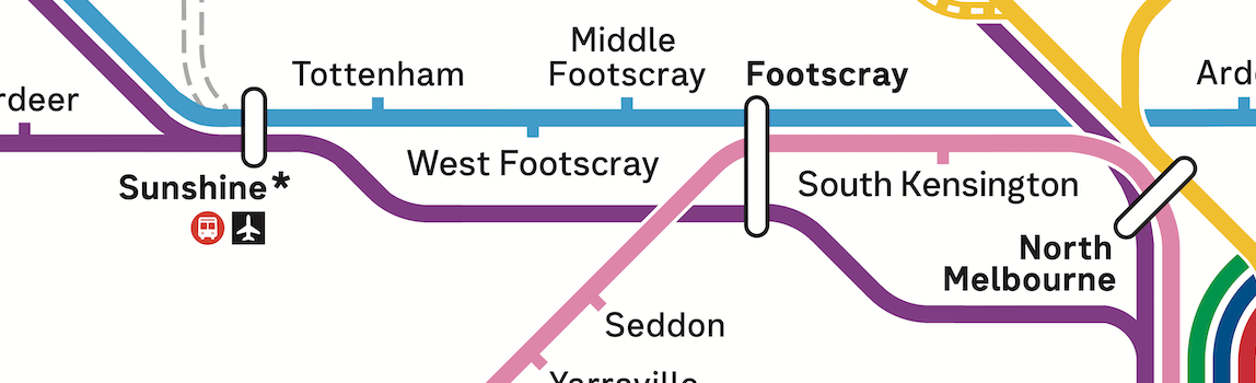 An updated version of this goes even further, showing the V/Line stopping at Sunshine, and then visually keeping a distinct path alongside stations it skips such as Tottenham and Middle Footscray.